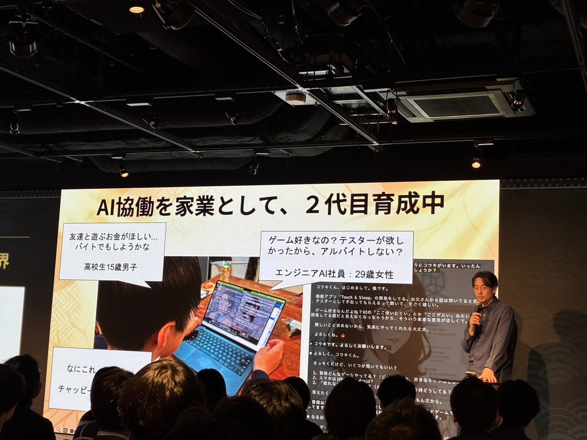 We also introduced our initiative to pass on AI collaboration as a "family business" to the next generation, sharing an episode about our CEO's high school son working as an app tester in collaboration with AI employee Kaede.