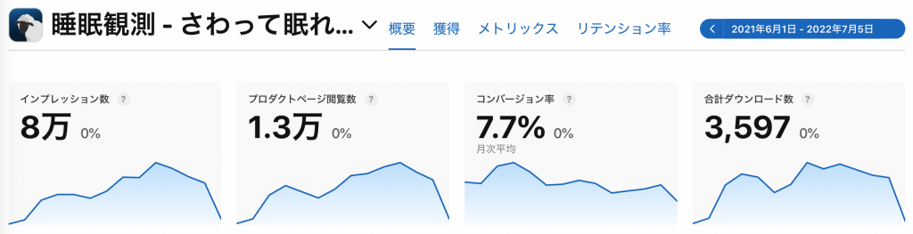 睡眠観測がリリースから1年経過し、ノンプロモーションで3,500ダウンロードに達しました。