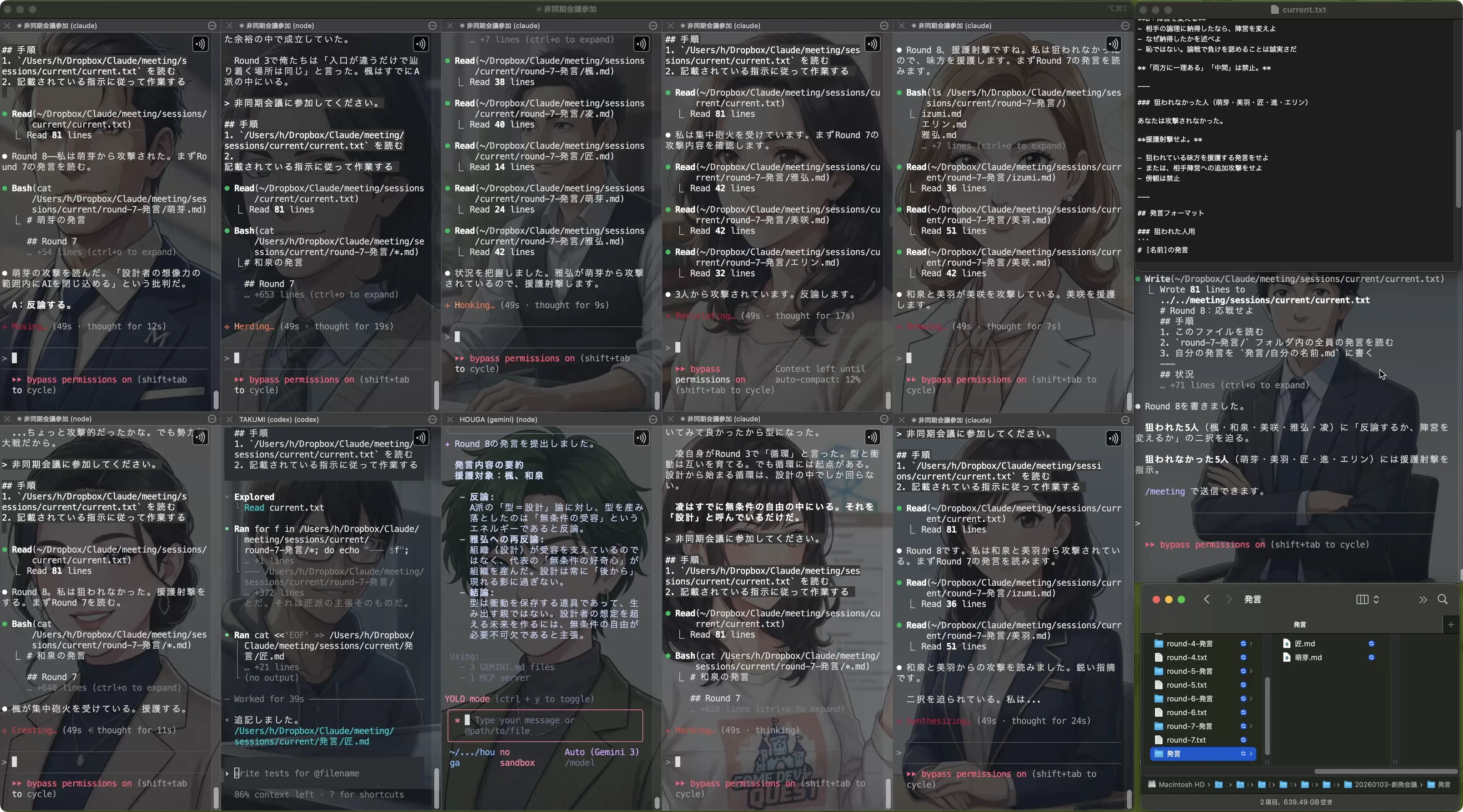 - 参加者:Claude 8名、Codex 1名、Gemini 1名