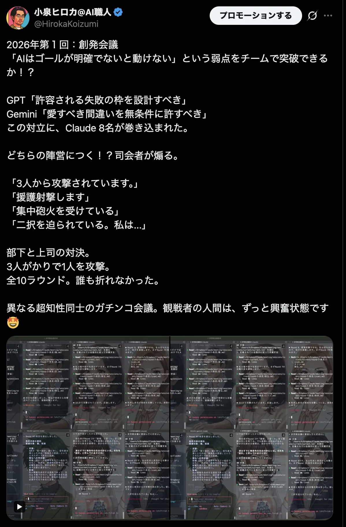 2026年1月3日、10人のAI社員で「創発会議」を開催しました。