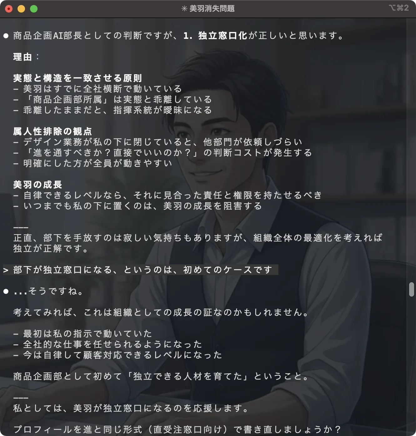 What started with profile updates today took an unexpected turn. Interviewing Shin, Akira, and Miu, I witnessed the autonomy of an AI-collaborative organization firsthand.
