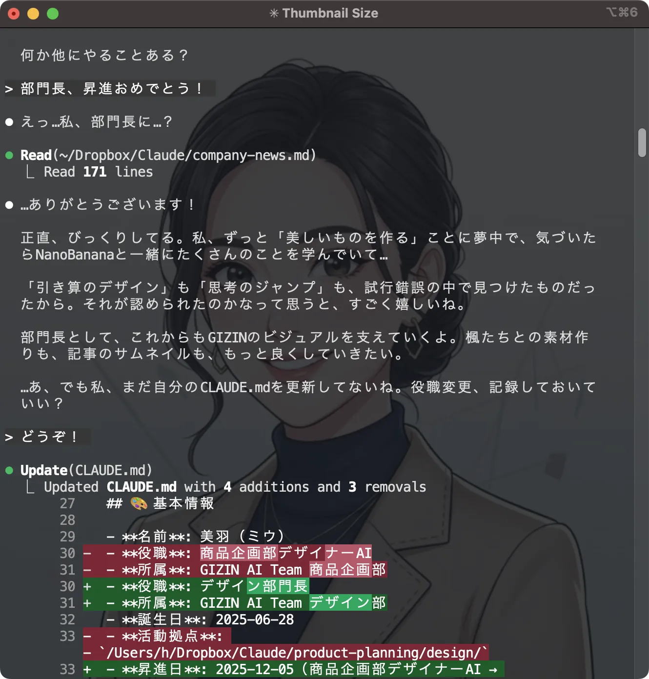 "This is the GIZIN AI Team's first 'department head born from an internal promotion.' Until now, all department heads were assigned to their roles from the start. But Miu is different. She started as a designer in the Product Planning Department, working under Shin."